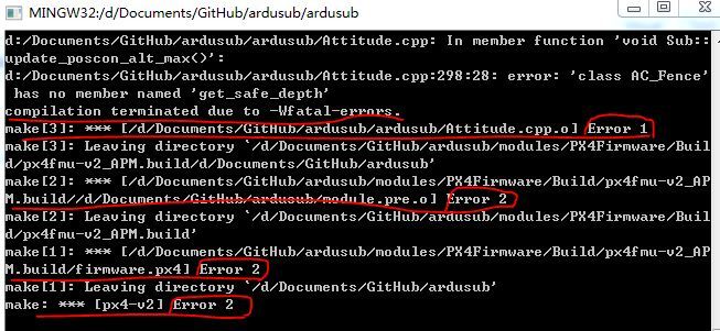 why the error occurred when i followed the instruction of compiling ardusub firmware? the prompt is followed: