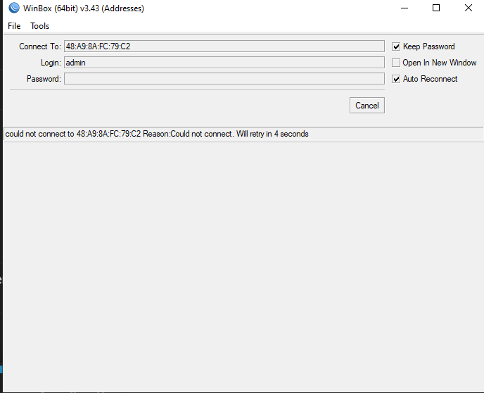 But now I can no longer access in to the route via Winbox for reprogram the router.
