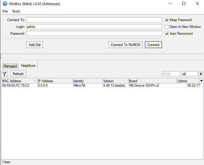 Is there a (default) login and password for IP 192.168.88.1 that I should use?