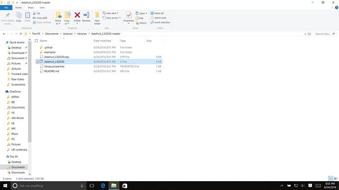 I am trying to implement the adafruit L3GD20 gyro into my ROV heading hold Arduino program. Although I have downloaded and unzipped the “master” from GitHub into the library, it does not show up on the library list in the IDE, so it won’t compile. I have attached a screen shot of what my Arduino directory looks like. I had the same problem with the LSM303, which I finally solved, but can’t remember how.