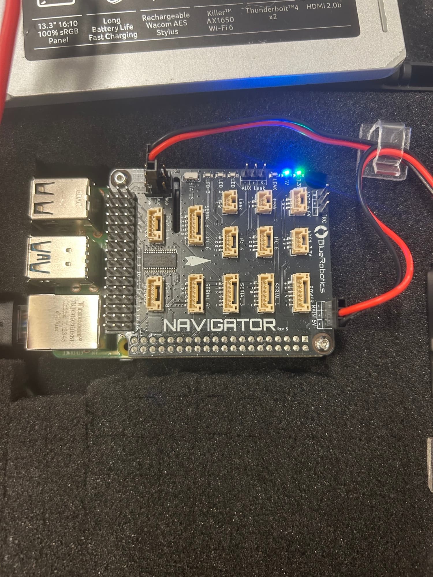We initially got all of the hardware and software set up. During this time, the specs to the submersible was 5.25V at around .7A, consuming approximately 2.5-3W of power. After testing button functions for about 1 second, the vehicle disconnected from Cockpit.