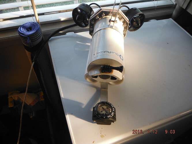 I have installed a magnetic compass on the ROV to allow rudimentary navigation. The bracket and compass snap into place and are removable.