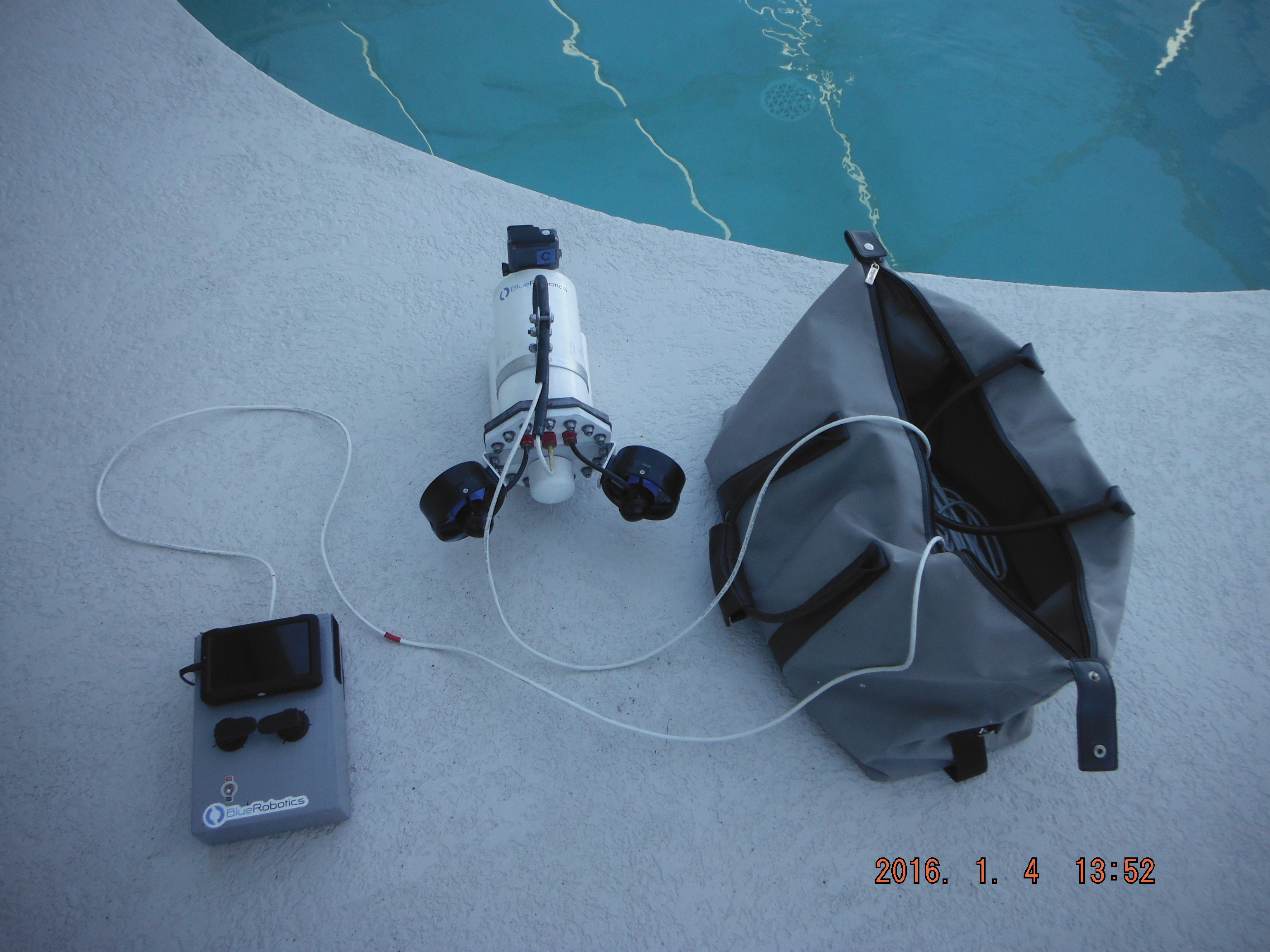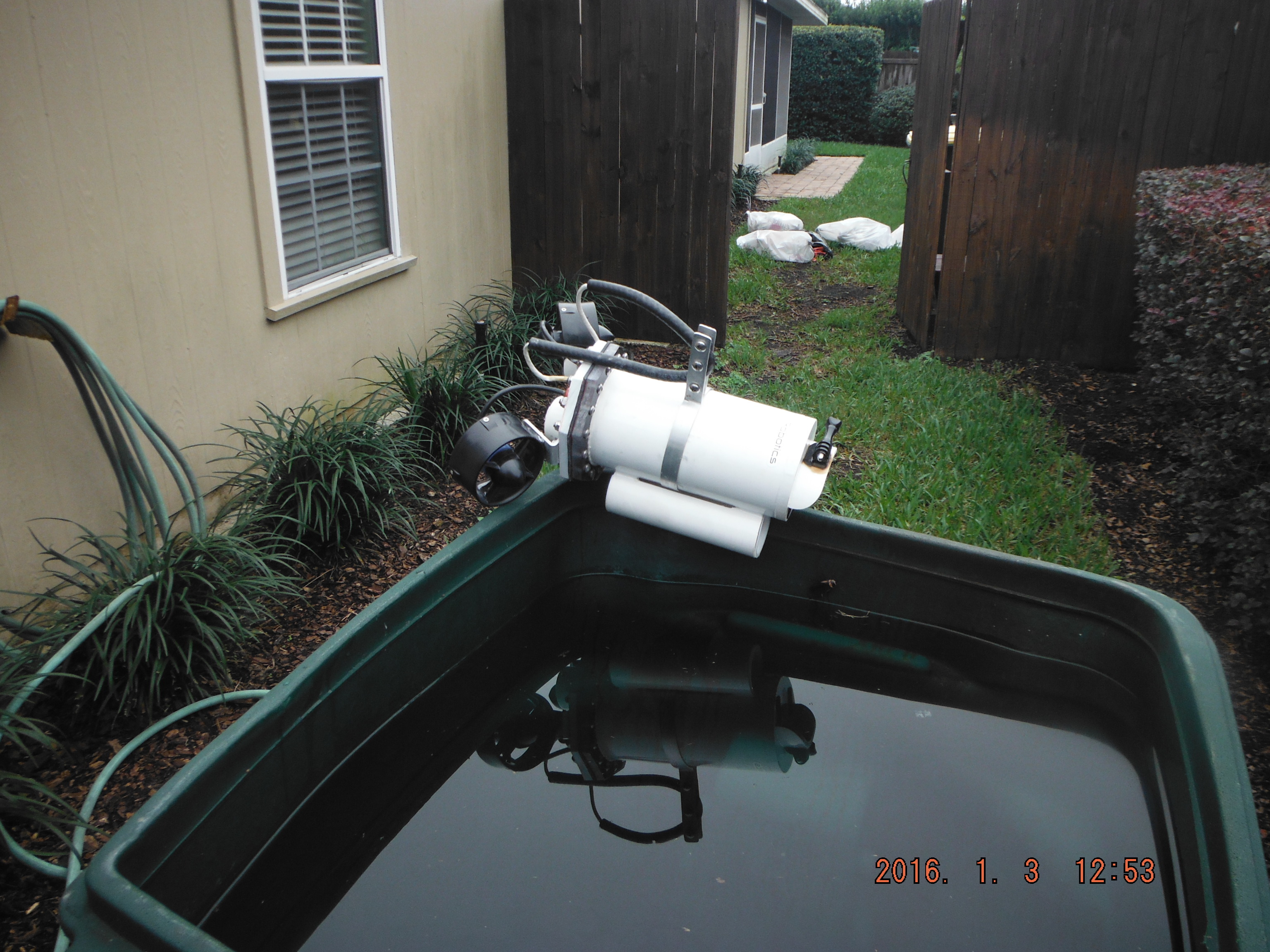 Sure, use any of the pictures I post as you choose. Here is a short video clip of today’s pool test. Most of the noise you hear is the ROV dragging along the bottom of the pool. It is 2 lbs negatively buoyant.