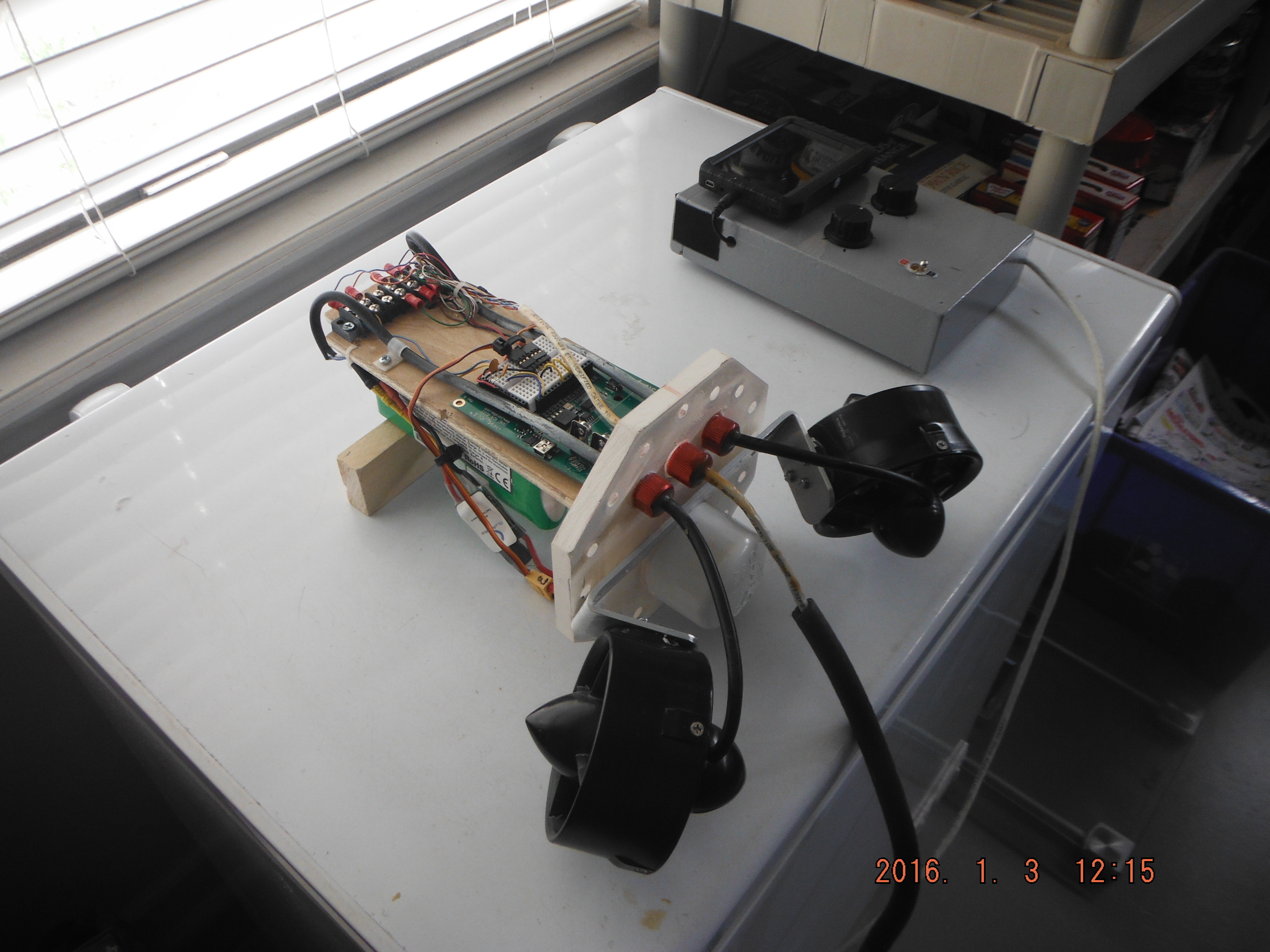 I completed assembly and initial shallow water testing of phase 2 today. Next step is at-sea deep water tests. The thrust of the two T100’s is impressive! I don’t think I will need more than 1/2 power in actual use.