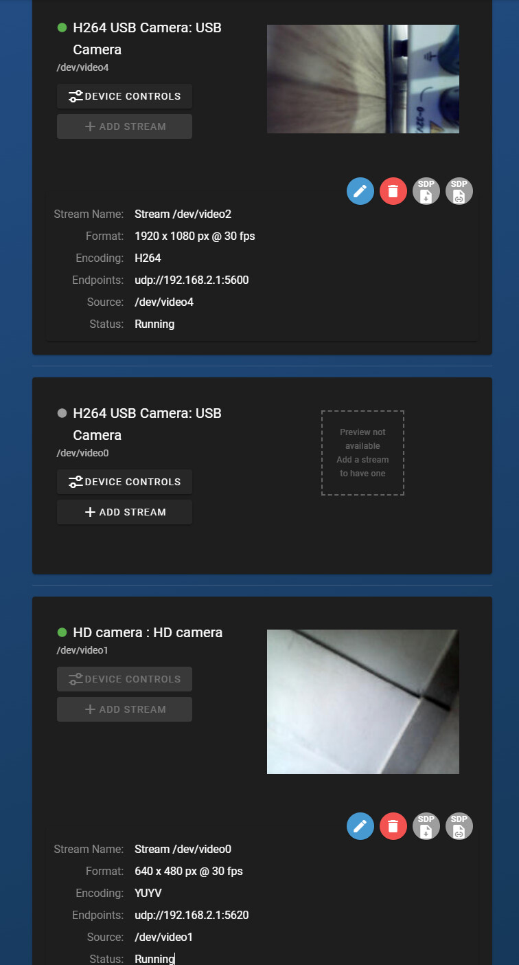 Just to add on to what Eliot shared - the second stream you have configured is using YUYV encoding, which is an uncompressed format not supported by Cockpit or QGC! You’ll want to use a camera that has H264 output, and then everything just works.